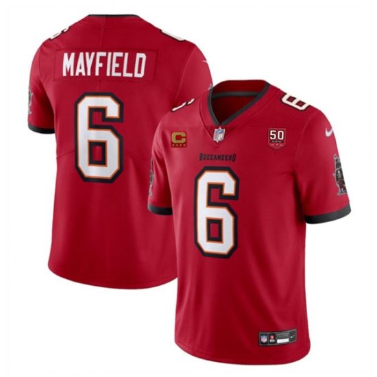Men's Tampa Bay Buccaneers #6 Baker Mayfield Red 2025 50th Anniversary And 4-Star C Vapor Untouchable Limited Football Stitched Jersey