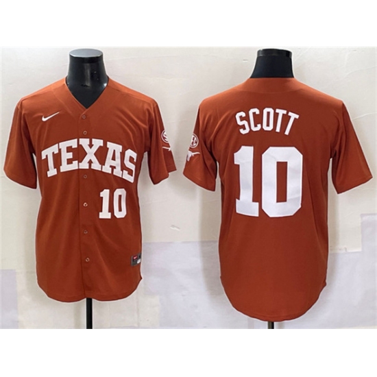 Men's Texas Longhorns #10 Mia Scott Orange SEC Patch Stitched Jersey