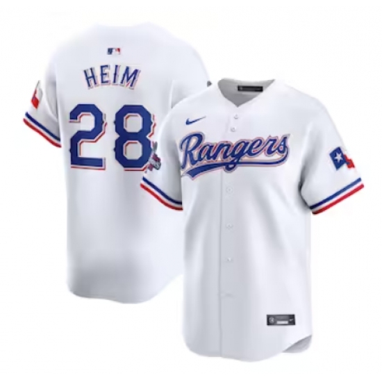 Men's Texas Rangers #28 Jonah Heim Nike White Home 2023 World Series Champions Limited Jersey