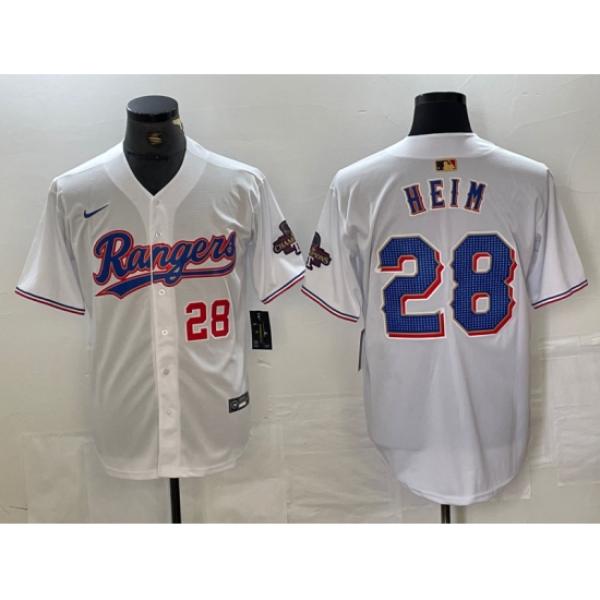 Men's Texas Rangers #28 Jonah Heim Number White 2023 World Series Champions Cool Base Jersey