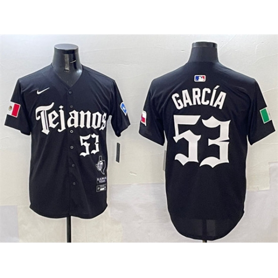 >Men's Texas Rangers #53 Adolis García Black Mexico 2025 Vapor Premier Limited Stitched Baseball Jersey