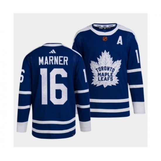 Men's Toronto Maple Leafs Black #16 Mitch Marner Blue 2022 Reverse Retro Stitched Jersey