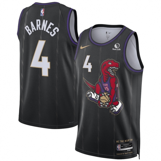 Men's Toronto Raptors #4 Scottie Barnes Black 2024-25 City Edition Stitched Basketball Jersey