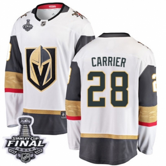 Men's Vegas Golden Knights #28 William Carrier Authentic White Away Fanatics Branded Breakaway 2018 Stanley Cup Final NHL Jersey