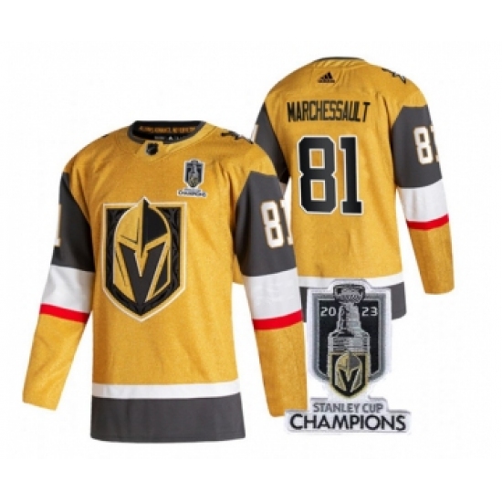 Men's Vegas Golden Knights #81 Jonathan Marchessault Gold 2023 Stanley Cup Champions Stitched Jersey