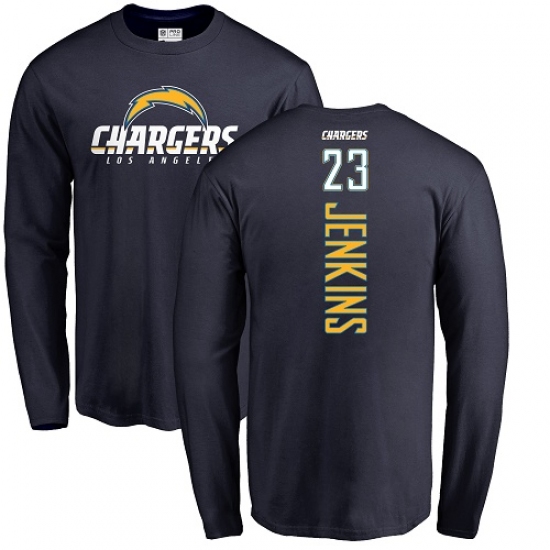 >NFL Nike Los Angeles Chargers #23 Rayshawn Jenkins Navy Blue Backer Long Sleeve T-Sh