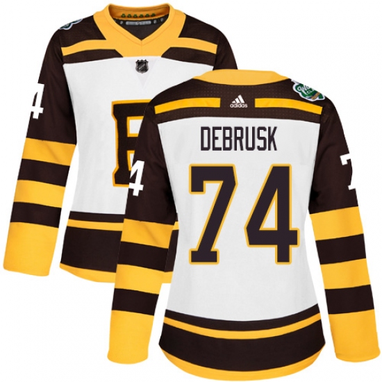 >Women's Adidas Boston Bruins #74 Jake DeBrusk Authentic White 2019 Winter Classic NHL Jersey