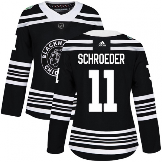 Women's Adidas Chicago Blackhawks #11 Jordan Schroeder Authentic Black 2019 Winter Classic NHL Jersey