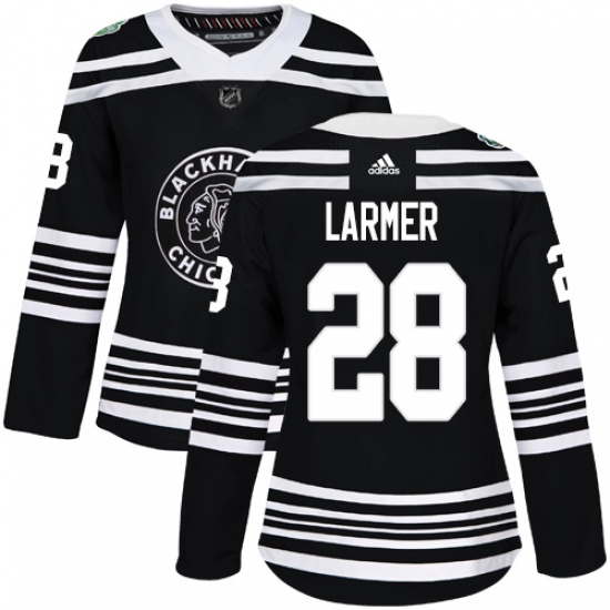 Women's Adidas Chicago Blackhawks #28 Steve Larmer Authentic Black 2019 Winter Classic NHL Jersey