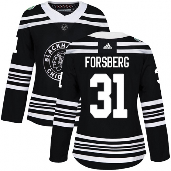 Women's Adidas Chicago Blackhawks #31 Anton Forsberg Authentic Black 2019 Winter Classic NHL Jersey
