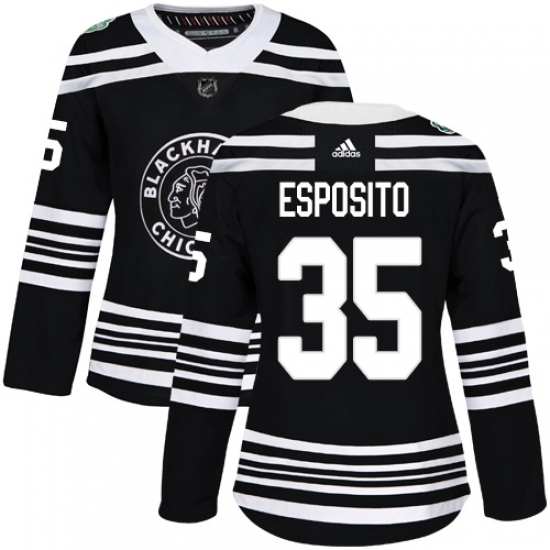 Women's Adidas Chicago Blackhawks #35 Tony Esposito Authentic Black 2019 Winter Classic NHL Jersey