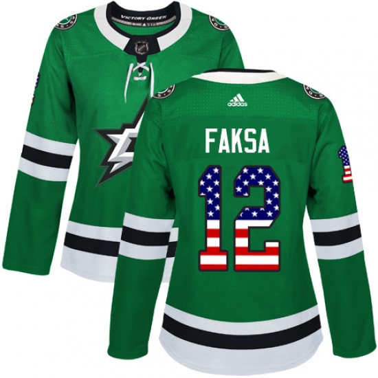 Home>NHL>Dallas Stars>Radek Faksa>Women's Adidas Dallas Stars #12 Radek Faksa Authentic Green USA Flag Fashion NHL Jersey