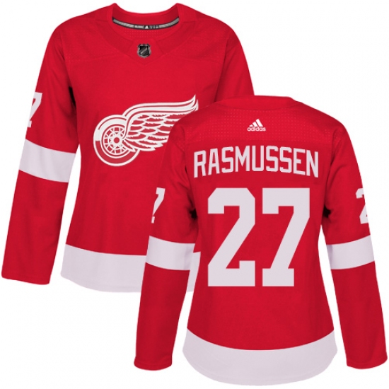 Home>NHL>Detroit Red Wings>Michael Rasmussen>Women's Adidas Detroit Red Wings #27 Michael Rasmussen Premier Red Home NHL Jersey