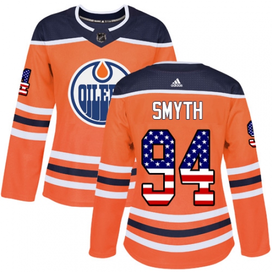 Home>NHL>Edmonton Oilers>Ryan Smyth>Women's Adidas Edmonton Oilers #94 Ryan Smyth Authentic Orange USA Flag Fashion NHL Jersey
