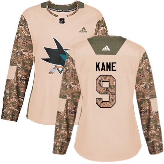 >Women's Adidas San Jose Sharks #9 Evander Kane Authentic Camo Veterans Day Practice NHL Jersey