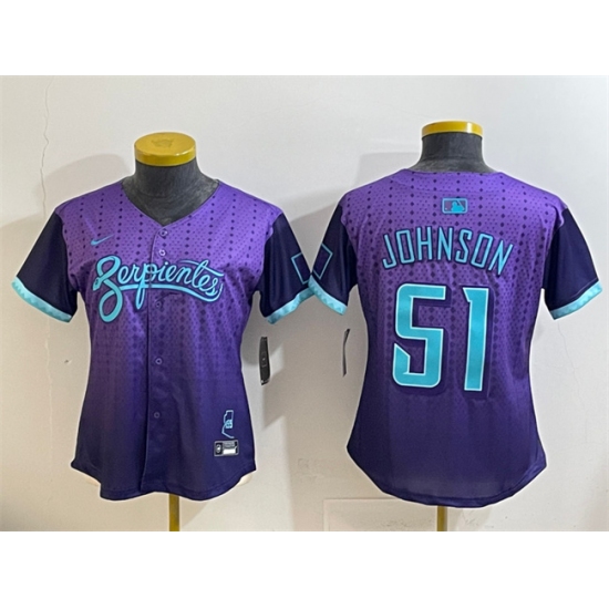 >Women's Arizona Diamondbacks #51 Randy Johnson Purple 2025 City Connect Limited Stitched Baseball Jersey(Run Small)