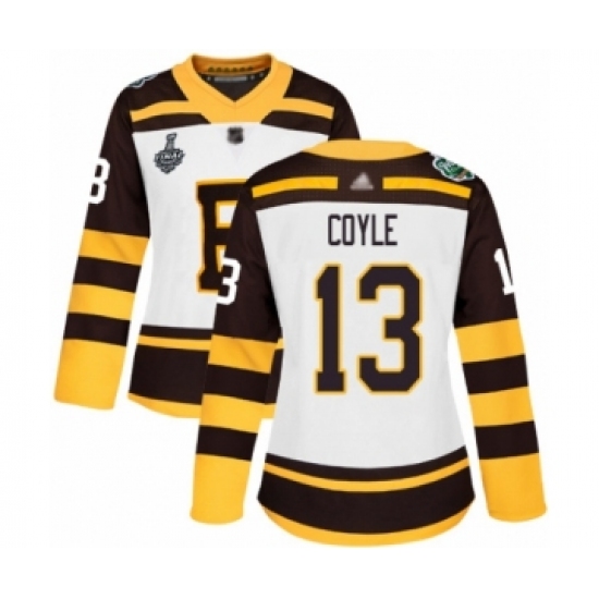 >Women's Boston Bruins #13 Charlie Coyle Authentic White Winter Classic 2019 Stanley Cup Final Bound Hockey Jersey