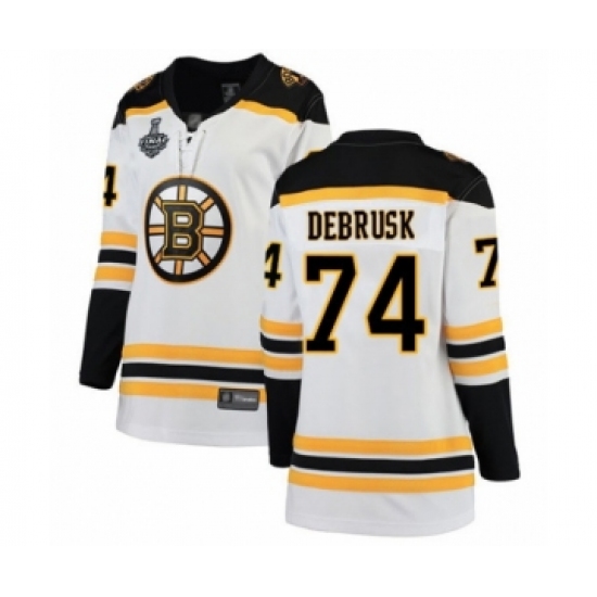 Women's Boston Bruins #74 Jake DeBrusk Authentic White Away Fanatics Branded Breakaway 2019 Stanley Cup Final Bound Hockey Jersey