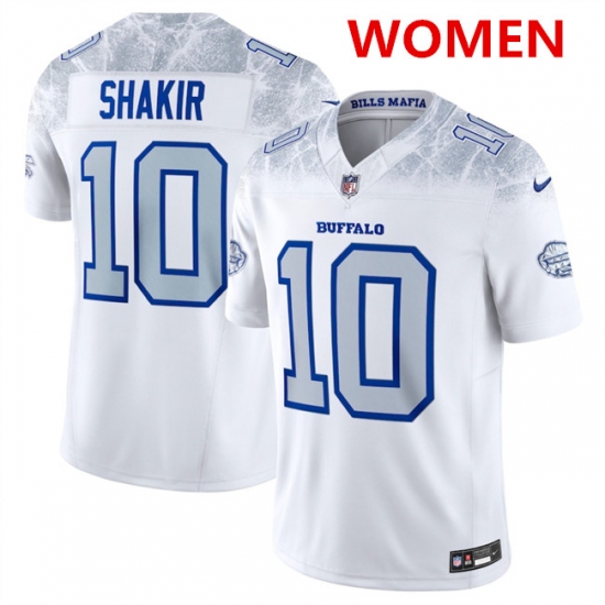 Women's Buffalo Bills #10 Khalil Shakir White 2025 F.U.S.E. “Rivalries” Vapor Untouchable Football Stitched Jersey(Run Small)