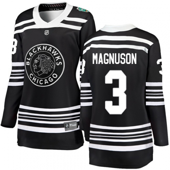 >Women's Chicago Blackhawks #3 Keith Magnuson Black 2019 Winter Classic Fanatics Branded Breakaway NHL Jersey