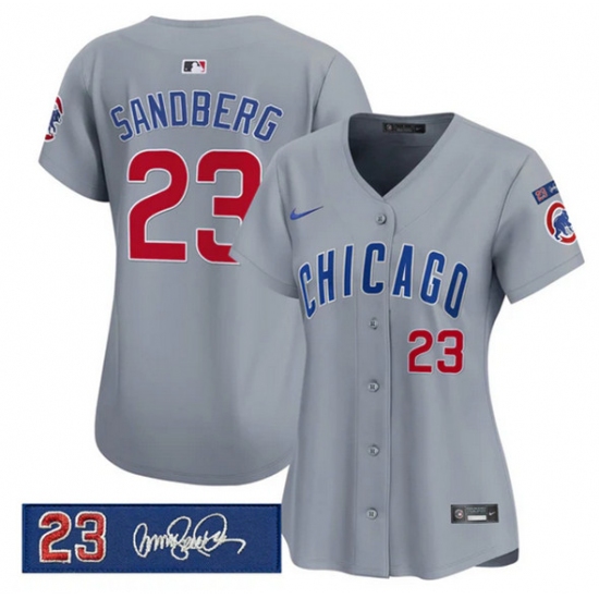 Women's Chicago Cubs #23 Ryne Sandberg Gray 'Ryne Sandberg Tribute' Vapor Limited V3 Stitched Baseball Jersey(Run Small)