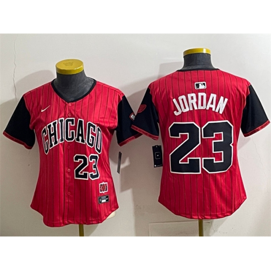 >Women's Chicago White Sox #23 Michael Jordan Red Black 2025 City Connect Limited Stitched Baseball Jersey(Run Small)