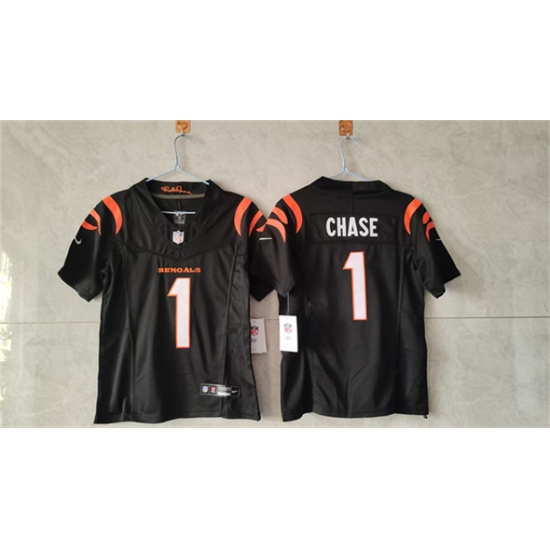 Women's Cincinnati Bengals #1 Ja'Marr Chase Black F.U.S.E. Vapor Football Stitched Jersey(Run Small)