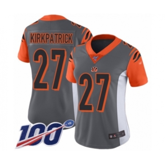 >Women's Cincinnati Bengals #27 Dre Kirkpatrick Limited Silver Inverted Legend 100th Season Football Jersey