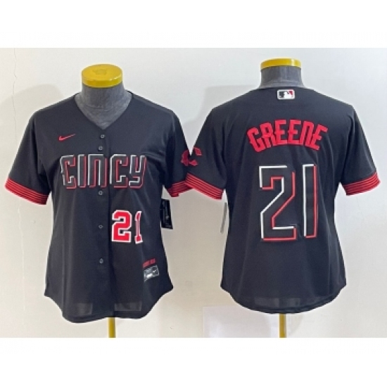 Women's Cincinnati Reds #21 Hunter Greene Number Black 2023 City Connect Cool Base Stitched Jersey2