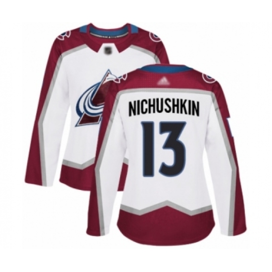 Women's Colorado Avalanche #13 Valeri Nichushkin Authentic White Away Hockey Jersey