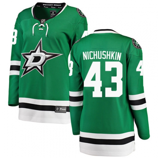 Home>NHL>Dallas Stars>Valeri Nichushkin>Women's Dallas Stars #43 Valeri Nichushkin Authentic Green Home Fanatics Branded Breakaway NHL Jersey