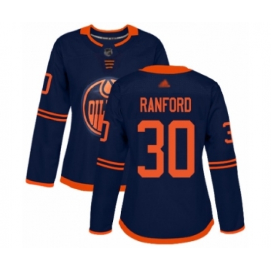 Women's Edmonton Oilers #30 Bill Ranford Authentic Navy Blue Alternate Hockey Jersey