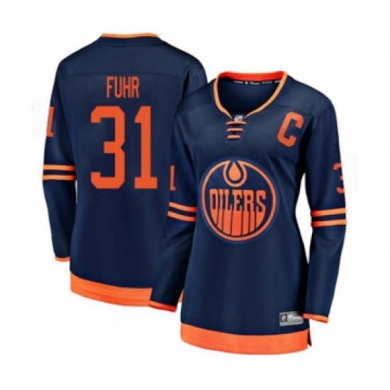 Women's Edmonton Oilers #31 Grant Fuhr Authentic Navy Blue Alternate Fanatics Branded Breakaway Hockey Jersey