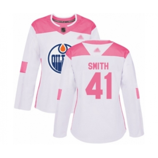 >Women's Edmonton Oilers #41 Mike Smith Authentic White Pink Fashion Hockey Jersey