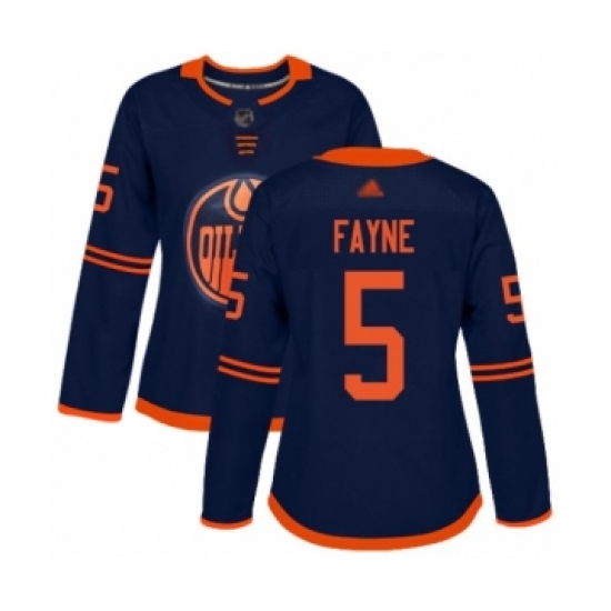 Women's Edmonton Oilers #5 Mark Fayne Authentic Navy Blue Alternate Hockey Jersey