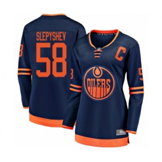 >Women's Edmonton Oilers #58 Anton Slepyshev Authentic Navy Blue Alternate Fanatics Branded Breakaway Hockey Jersey
