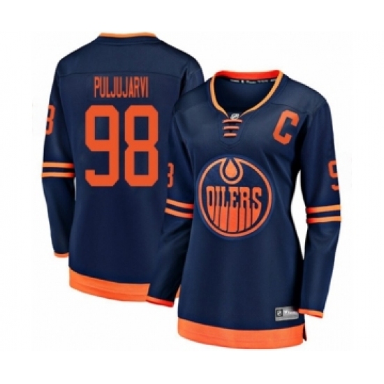 >Women's Edmonton Oilers #98 Jesse Puljujarvi Authentic Navy Blue Alternate Fanatics Branded Breakaway Hockey Jersey