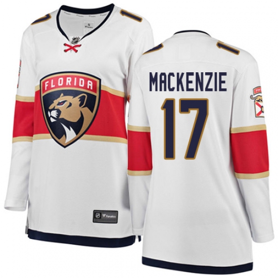 Home>NHL>Florida Panthers>Derek MacKenzie>Women's Florida Panthers #17 Derek MacKenzie Authentic White Away Fanatics Branded Breakaway NHL Jersey