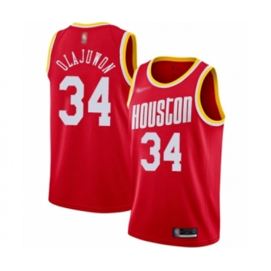Men's Nike Houston Rockets #34 Hakeem Olajuwon Swingman Red NBA Jersey - 2018 19 City Edition