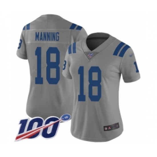 >Women's Indianapolis Colts #18 Peyton Manning Limited Gray Inverted Legend 100th Season Football Jersey