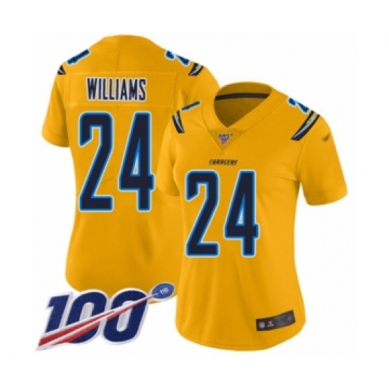 >Women's Los Angeles Chargers #24 Trevor Williams Limited Gold Inverted Legend 100th Season Football Jersey