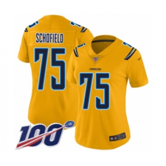 Women's Los Angeles Chargers #75 Michael Schofield Limited Gold Inverted Legend 100th Season Football Jersey