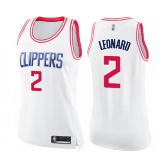 Women's Los Angeles Clippers #2 Kawhi Leonard Swingman White Pink Fashion Basketball Jersey