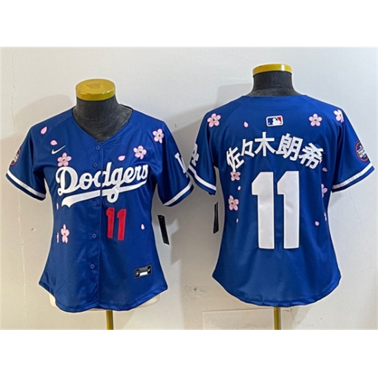 >Women's Los Angeles Dodgers #11 佐々木朗希 Royal 2025 Tokyo Series Limited Stitched Baseball Jersey(Run Small)