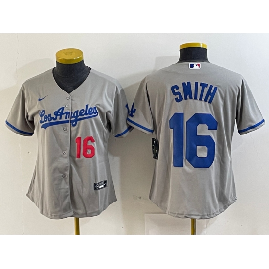 Women's Los Angeles Dodgers #16 Will Smith Authentic Grey Road Cool Base Baseball Player Jersey