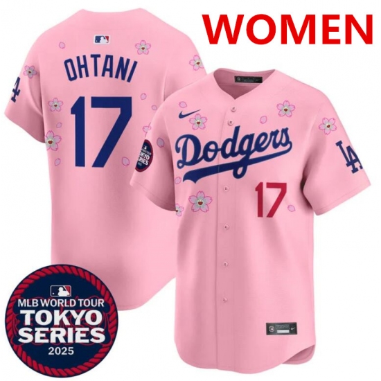 >Women's Los Angeles Dodgers #17 Shohei Ohtani Pink 2025 Tokyo Series Limited Stitched Baseball Jersey(Run Small)