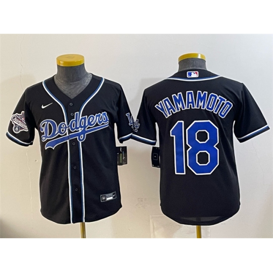 Women's Los Angeles Dodgers #18 Yoshinobu Yamamoto Black Fashion 2025 World Series Champions Cool Base Stitched Baseball Jersey(Run Small)