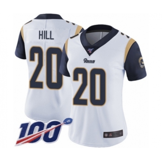>Women's Los Angeles Rams #20 Troy Hill White Vapor Untouchable Limited Player 100th Season Football Jersey