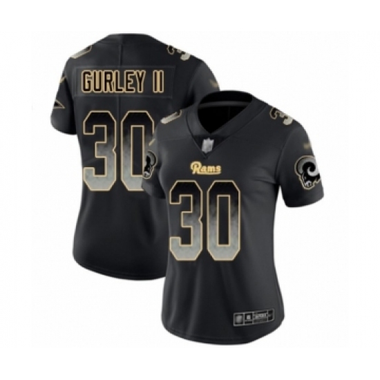 >Women's Los Angeles Rams #30 Todd Gurley Limited Black Smoke Fashion Football Jersey