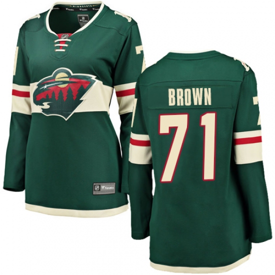 >Women's Minnesota Wild #71 J T Brown Authentic Green Home Fanatics Branded Breakaway NHL Jersey